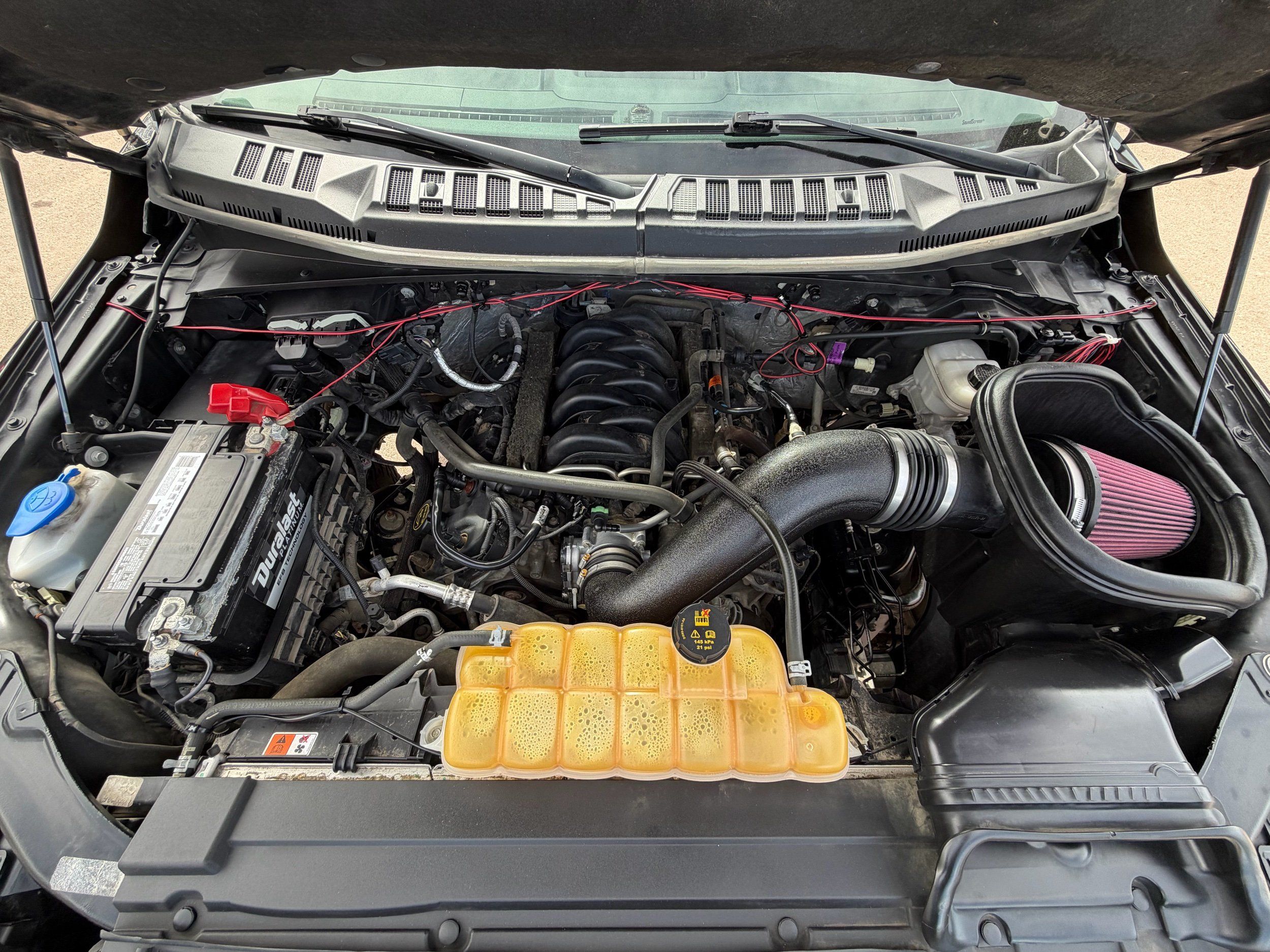 - AFE Tuned Truck w/Tuner (460 Horse Power, 650 Pound Feet of Torque) we average about 20 miles per gallon with the Ford 5.0L Coyote V8, 36 gallon fuel tank, about 800 miles per tank.