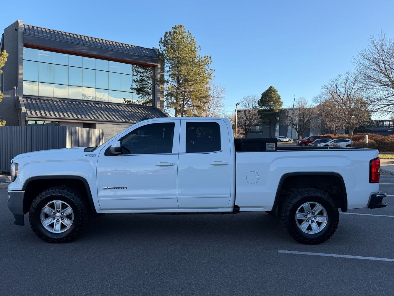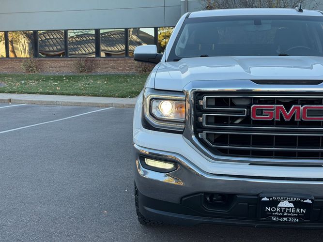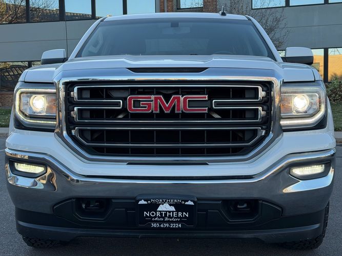 The 2016 Sierra 1500 is known for its bold, squared-off appearance with a wide grille, muscular body lines, and distinctive LED signature lighting. The SLE trim adds chrome accents, alloy wheels, and a refined, professional look that stands out whether at work or out around town.