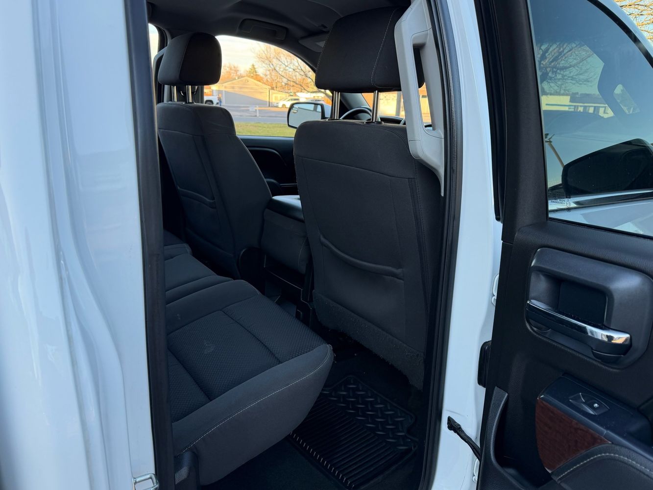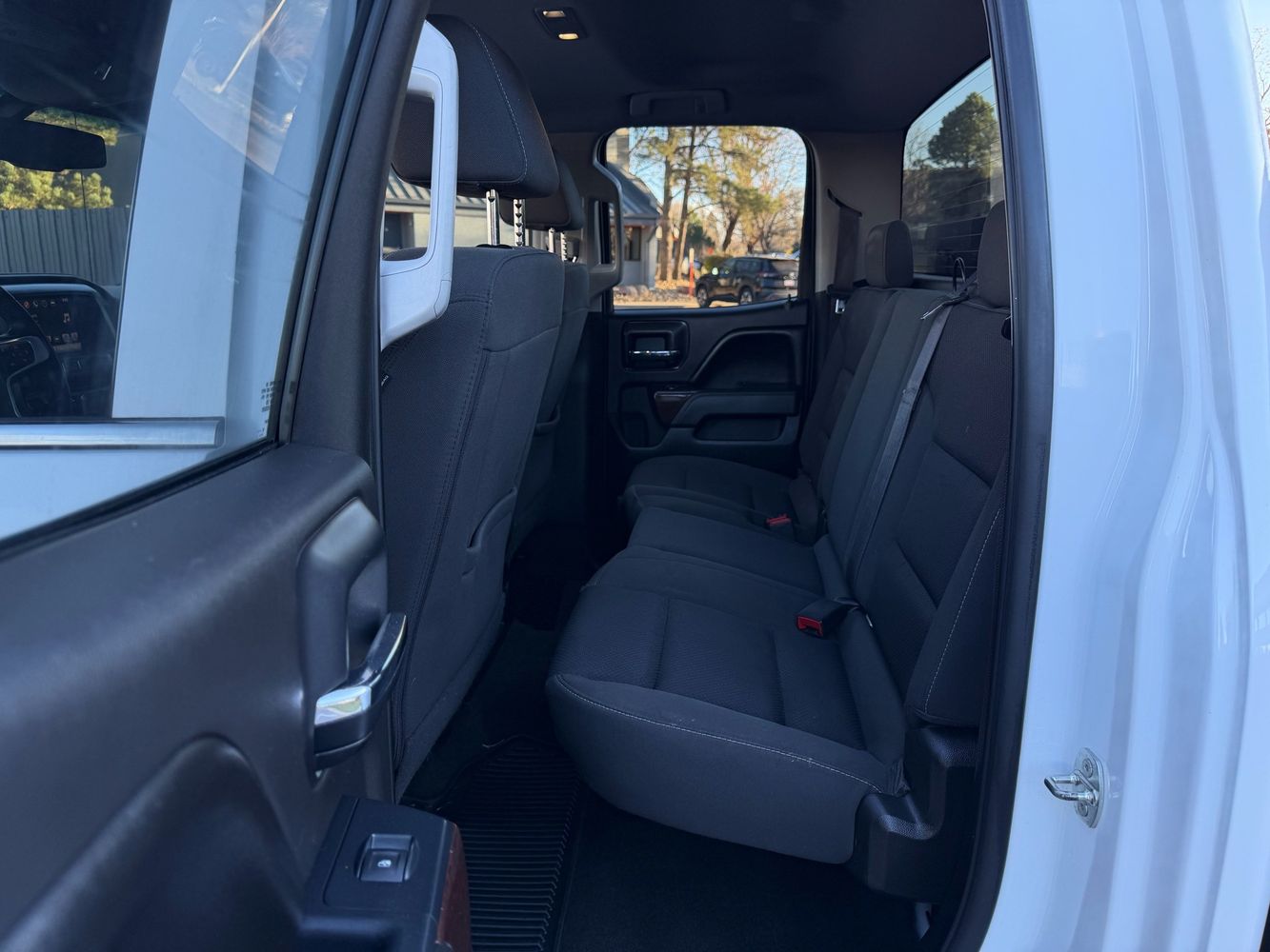 Inside, the Sierra SLE features a spacious and practical cabin with durable cloth upholstery, a leather-wrapped steering wheel, and supportive seating. The Extended Cab layout offers rear-hinged doors and additional seating or storage space. Features like dual-zone climate control and a quiet, well-insulated interior enhance everyday comfort.