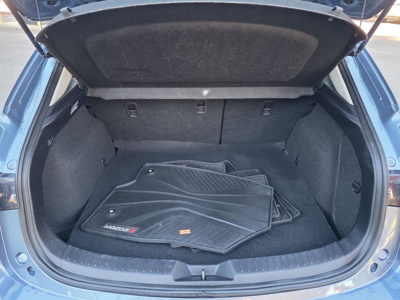 Inside, the Mazda3’s cabin feels premium for its class, with high-quality materials and a modern layout. The driver-focused cockpit features supportive front seats and intuitive controls. The hatchback design enhances practicality, offering generous cargo space that expands significantly with the rear seats folded. Available features include dual-zone automatic climate control, a leather-wrapped steering wheel, and optional leather-trimmed seats for added comfort.