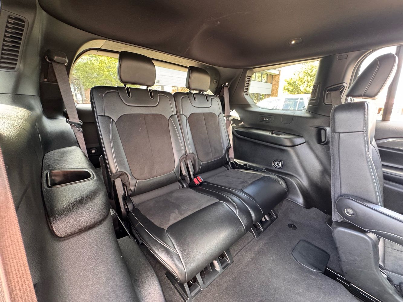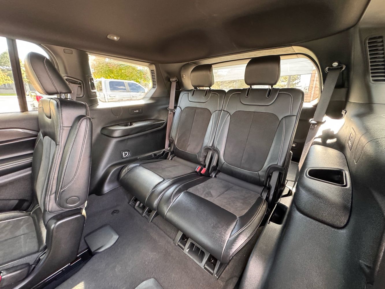 Inside, the Altitude trim features a sleek, modern cabin with leather-trimmed seating, heated front seats, a leather-wrapped steering wheel, and gloss black accents that give it a premium feel. It seats up to seven passengers, with a usable third row and a cargo capacity of 17.2 cubic feet behind it. Tech features include a 10.25-inch digital driver display, Uconnect infotainment with Apple CarPlay/Android Auto, remote start, and a power liftgate for added convenience.